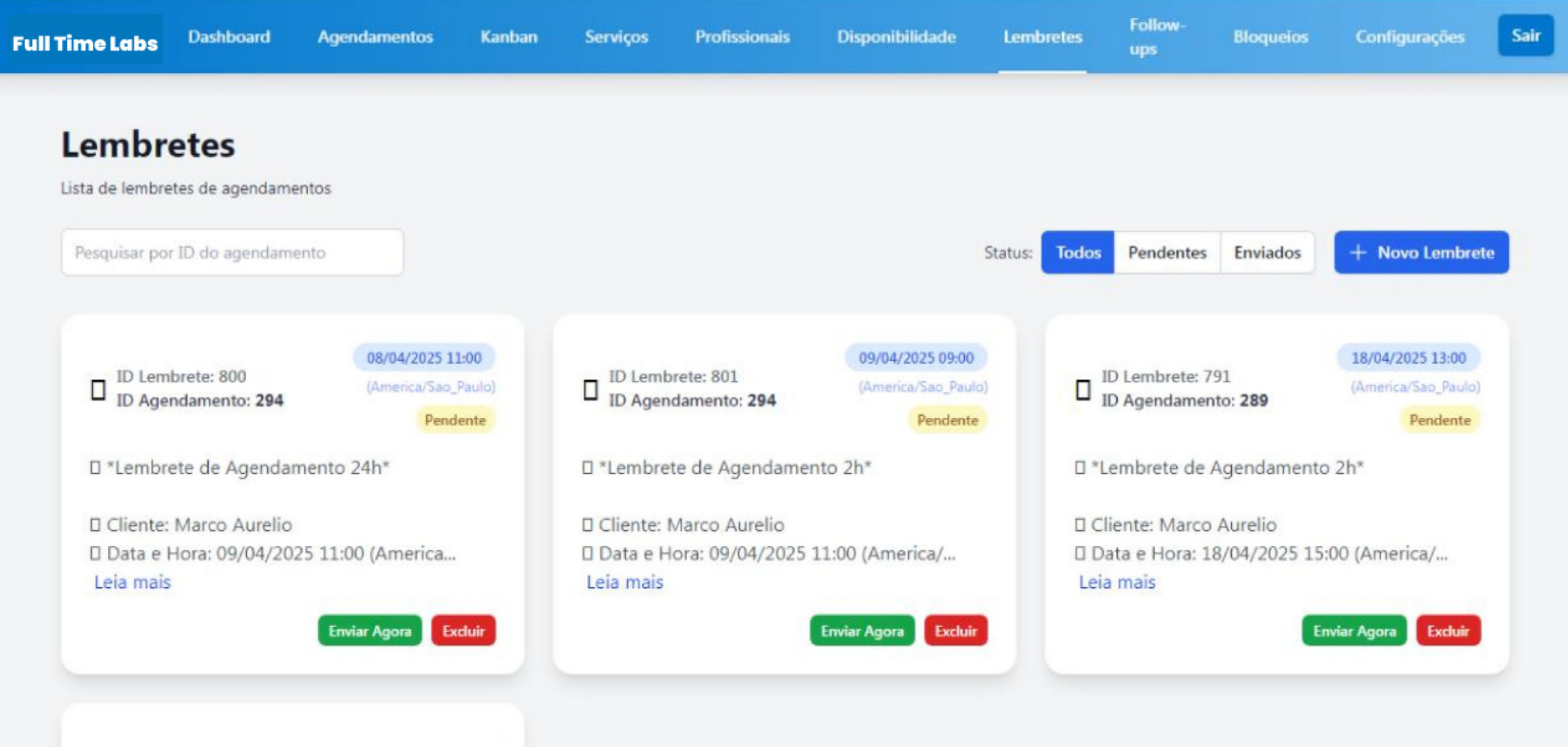 A funcionalidade de Lembretes da ferramenta de Agendamento com IA da FullSports é um recurso essencial para otimizar a gestão de horários e compromissos, tanto para os profissionais quanto para os clientes. Notificações automáticas e personalizáveis, garantem que todos os envolvidos estejam sempre informados.